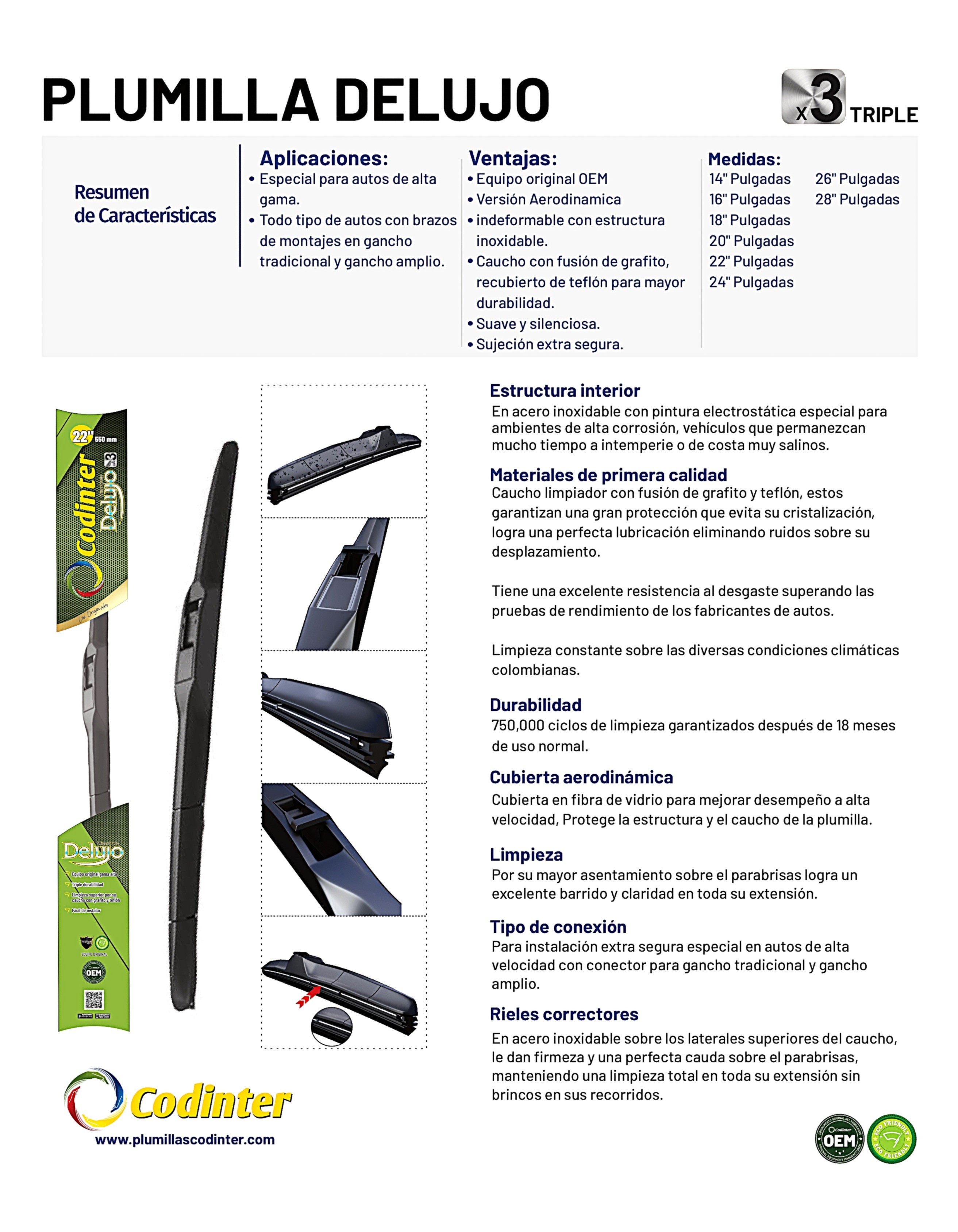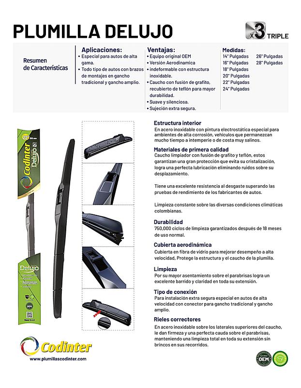 Caucho limpiador con fusión de grafito y teflón, estos garantizan una gran protección que evita su cristalización, logra una perfecta lubricación eliminando ruidos sobre su desplazamiento.